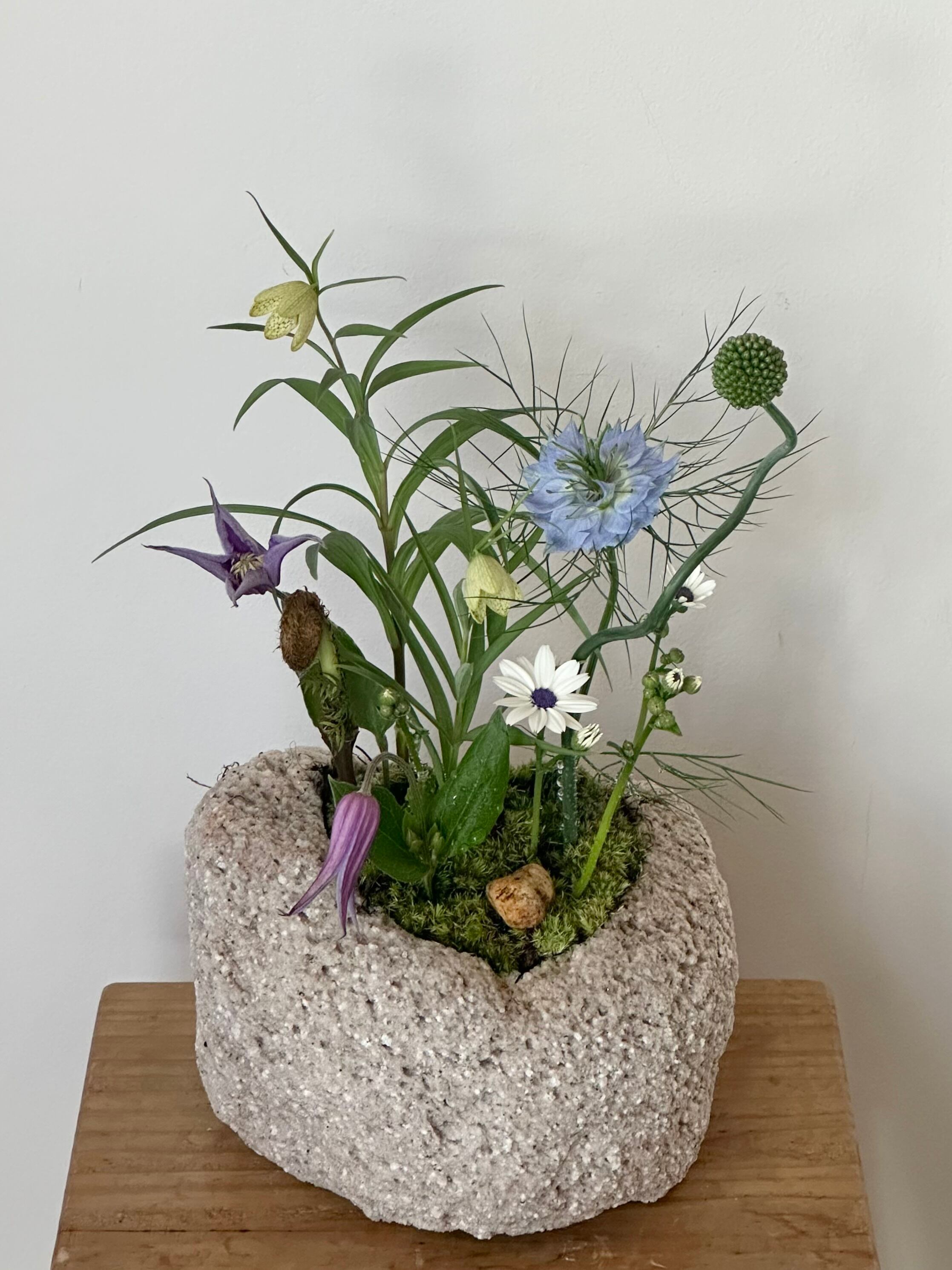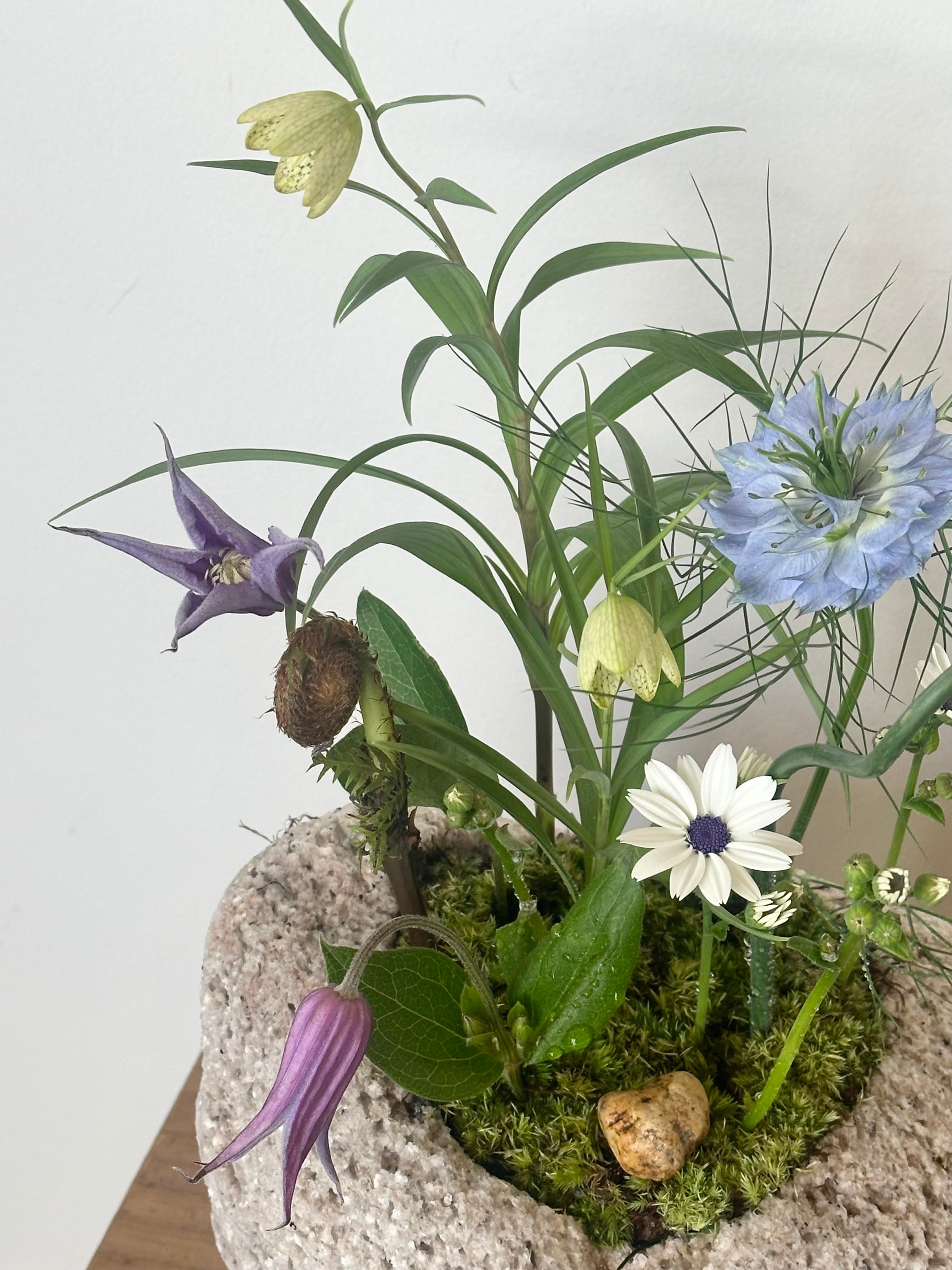 石と苔と草花のアレンジメント